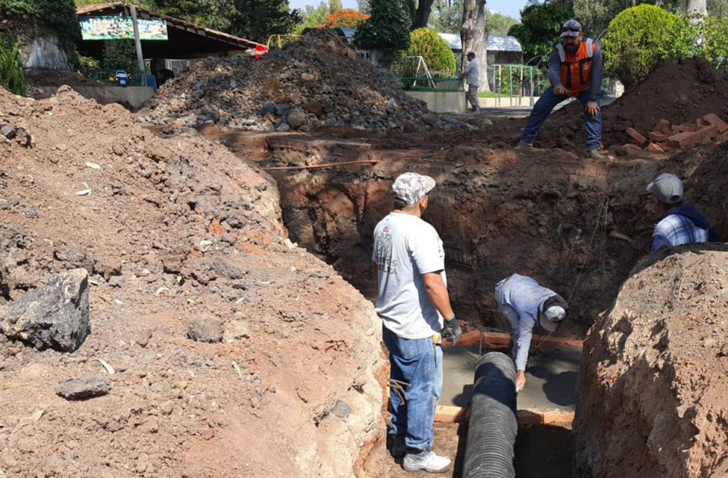 Mientras que con una inversión de 736 mil 169 pesos se realizan los trabajos de drenaje en la parte norte del Zoológico con el propósito de desahogar el agua gris de los albergues, mismo que cuenta con tubería de 10 pulgadas al inicio y 20 pulgadas al terminar, a fin de facilitar su desemboque. La obra comprende una longitud de 275 metros lineales y contempla la elaboración de tres pozos de visita con una profundidad de tres metros.