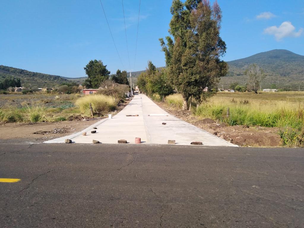 Por medio del programa insignia Obras Públicas por Cooperación, la dependencia estatal construyó la superficie de rodamiento de concreto hidráulico en 3 mil 820 metros cuadrados.