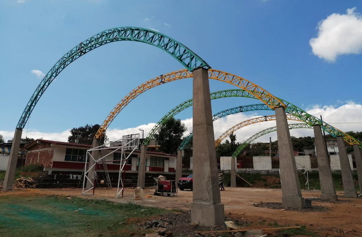 Con el compromiso de dignificar los espacios educativos en Michoacán, la SCOP realiza los trabajos de instalación de la estructura de 744 metros cuadrados. Esta obra se sumará a más de 70 cubiertas ya entregadas en distintos planteles de la entidad.