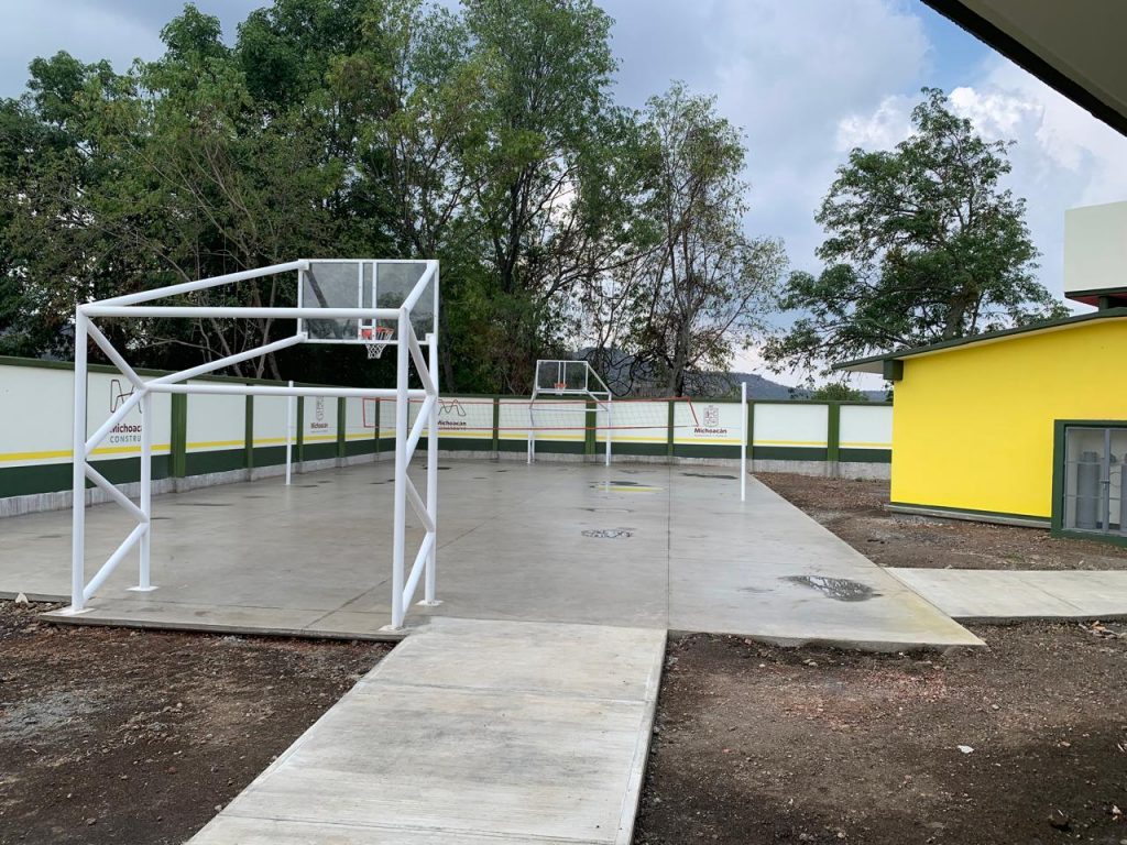 Mientras que, en el Telebachillerato 103, ubicado en la localidad de Chiquimitío, donde estudian cerca de 100 jóvenes, se edificaron tres aulas didácticas en 144 metros cuadrados, para las cuales también se entregaron 138 piezas de mobiliario y equipamiento; también se construyó la barda perimetral de 201 metros lineales de longitud, así como una cancha de usos múltiples, taller de cómputo, laboratorio, cooperativa y dirección, que suman 581.5 metros cuadrados construidos.