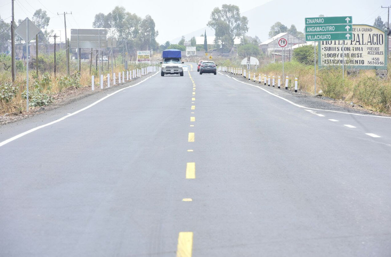 Anteriormente, esta vía terrestre se encontraba totalmente deteriorada, sin embargo no recibió atención por parte de las administraciones estatales anteriores; ahora, es una ruta segura, que permite el traslado ágil de personas y mercancías, fortaleciendo el comercio y la atracción de visitantes al Bajío michoacano, condiciones que impulsan el desarrollo económico de la región.
