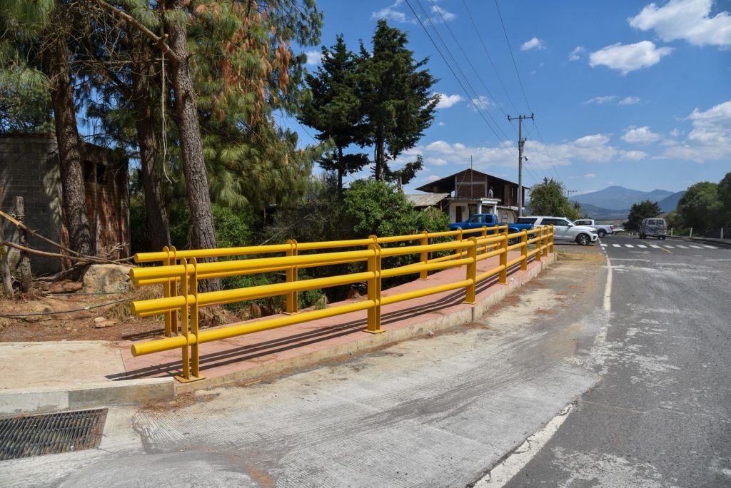 En San Felipe los Herreros, comunidad con autogobierno, el secretario supervisó la conclusión de una cancha de fútbol 7 y la modernización vial que incluye la ampliación del arroyo vehicular y un andador peatonal, garantizando un cruce seguro para dos mil habitantes.